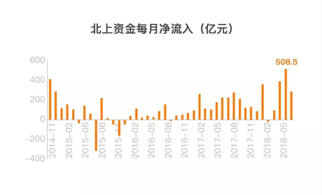 即使7月A股开始暴跌,北上资金依然保持稳定净流入态势,累计净买入额达284.7亿元,与6月份基本持平,处于沪深港通开通以来的中上水平,比去年同期增加近30%。